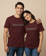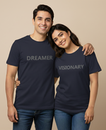 Celebrate your unique partnership and mindset with the Dreamer Visionary Couple Unisex Regular T-Shirt set. One shirt boldly features "DREAMER" while the other shows "VISIONARY," capturing the spirit of couples who balance inspiration and forward-thinking ambition. These matching tees bring together creative hearts and strategic minds, making them perfect for anniversaries, birthdays, or everyday wear as a symbol of unity.